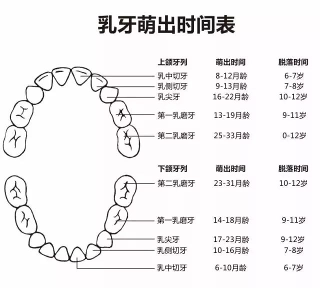 宝宝每颗牙萌出时间,可以参考下面的宝宝乳牙萌出时间表: