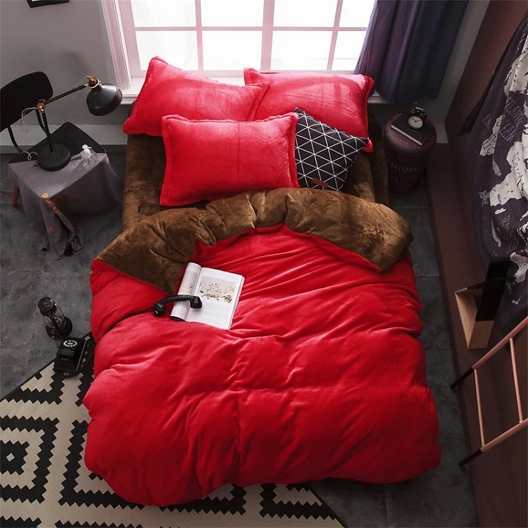 秋冬季:天气相对寒冷,我们可以选择法兰绒面料,宝宝绒面料,羊毛面料等毛绒绒类四件套。因为这些四件套面料柔软舒适,也不冰冷,适用于秋冬季。