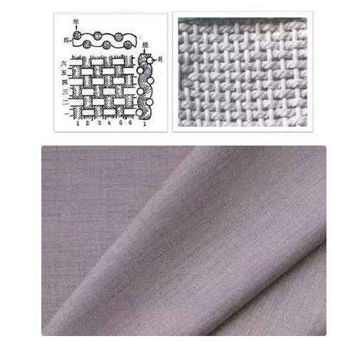 平纹:经纱和纬纱每隔一根纱就交织一次。交织点多,质地坚牢、表面平整,正反面外观效果相同,较为轻薄,透气性较好。