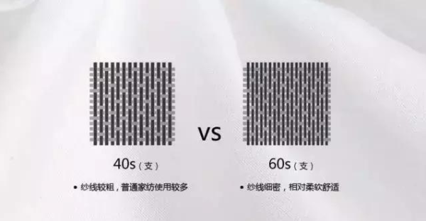 显然支数越高的布对棉花的要求就越高,并且对纱厂和织布厂也要求比较高,布的成本就越高。服装一般用60s-80s,床上用品的支数一般是分为20s、30s、40s、60s,另外还有比较罕见的80s。除此之外,还有一种比较特殊的布,不同纱布混织,比如有些贡缎,它的经线是60s,纬线是40s,这样的布料说是60s或40s亦可。