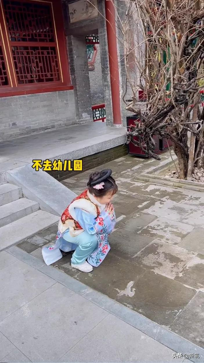 比如拍格格照时,她蹲在树边合十许愿,画面美美的,凑近才知道愿望是:“不用去幼儿园”!