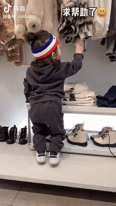 所以每当她进了服饰店,就像在自家衣柜一样自如,两岁就能动手搭出整套格子款秋冬装,保暖又优雅。