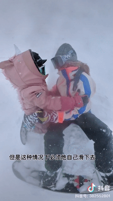 乖乖一度想过放弃,但是妈妈说她们要靠自己下山,最后乖乖和她拥抱一下,帅气地迎着风雪滑下去。