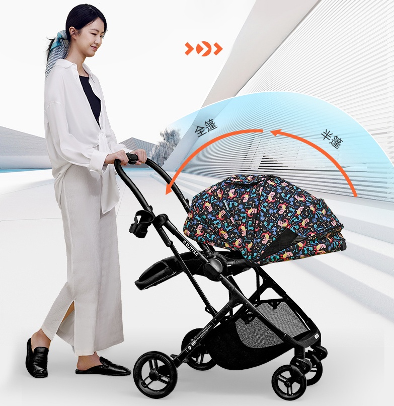 遮阳棚上的透明小天窗设计很人性化,可以随时观察到BB在推车里的动态。一键自动收车非常的方便,不用太弯腰下去就可以打开来,是每天要上下楼梯妈妈的首选。