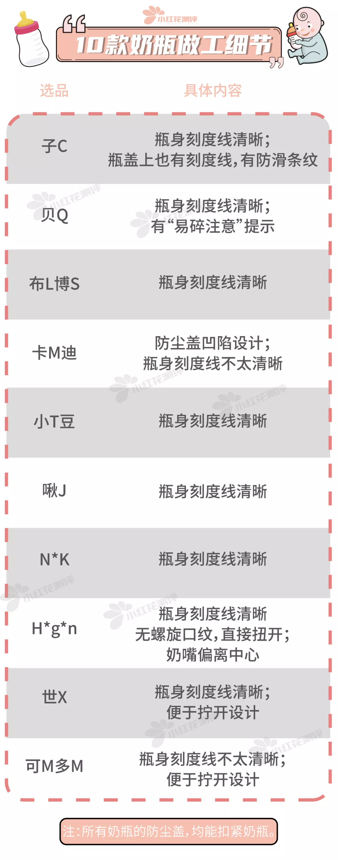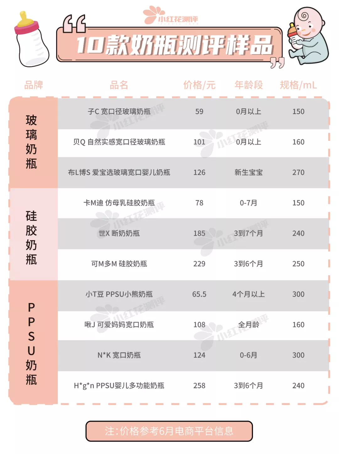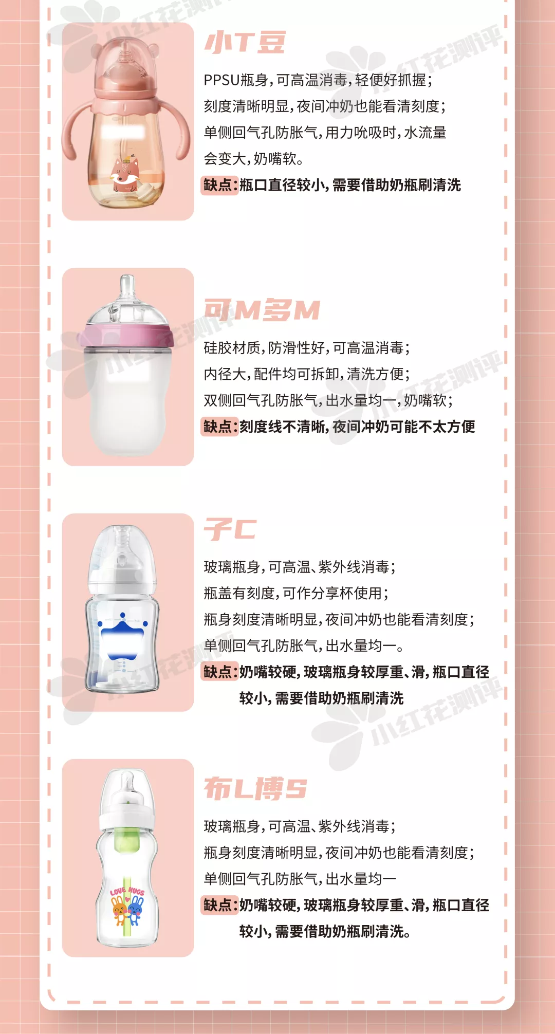 “小红花测评”公众号后台回复“婴儿奶瓶”可查看完整品牌名。