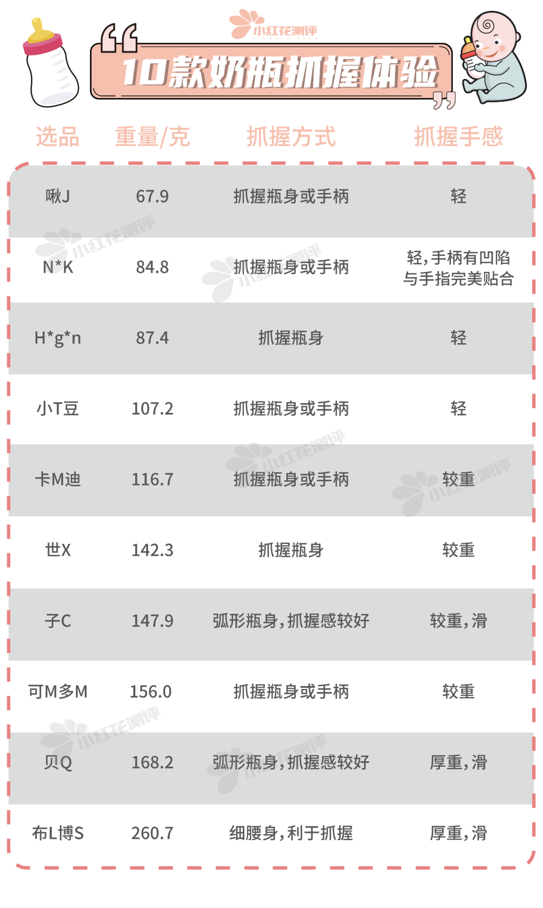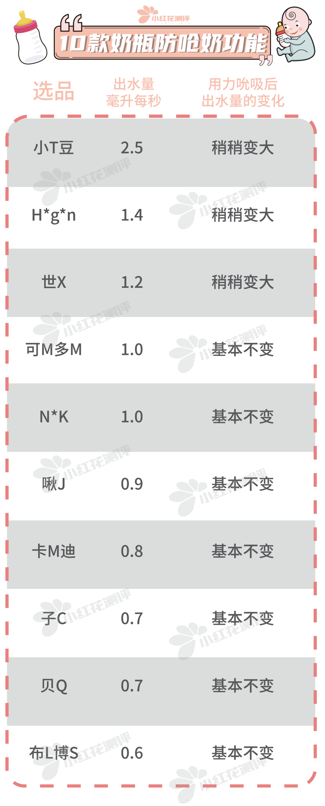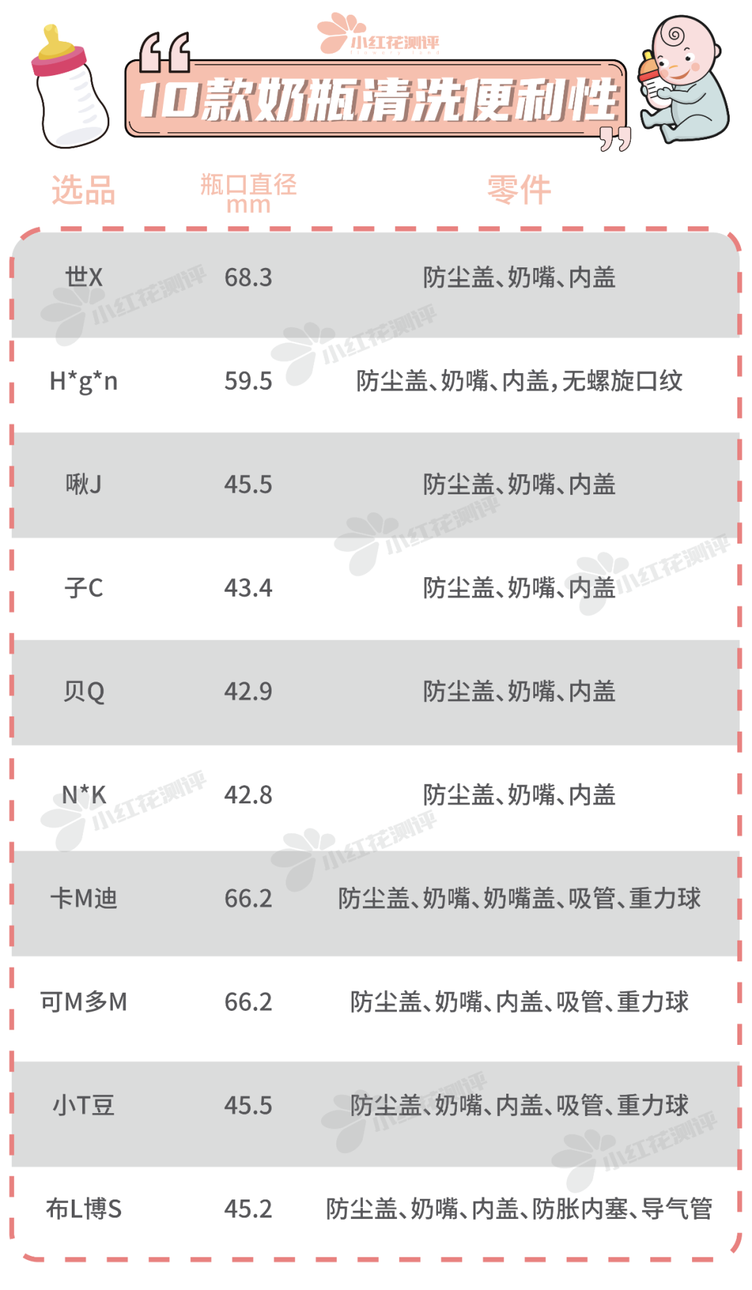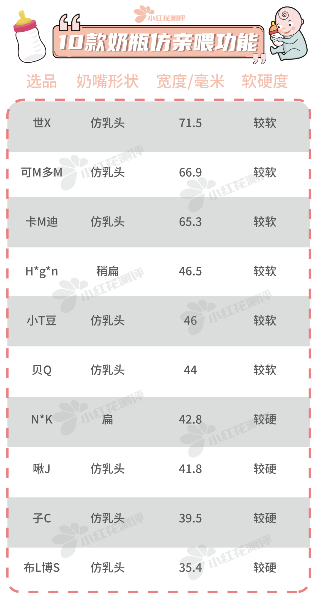 “小红花测评”公众号后台回复“婴儿奶瓶”可查看完整品牌名。