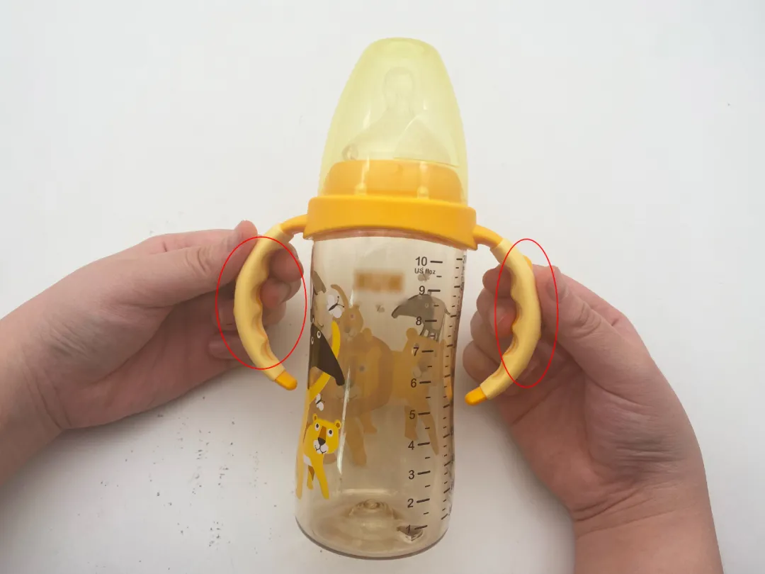 3. 有把手设计的奶瓶,更适合宝宝自己抓握。
