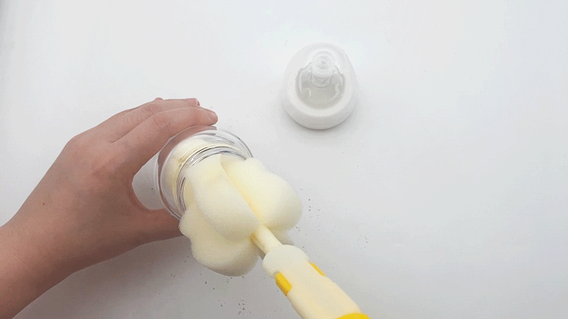 其他口径较小的奶瓶,最好借助奶瓶刷清洗。