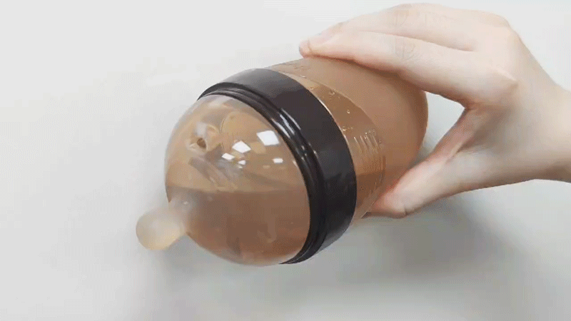 导气孔在下方,就会被奶液淹没,空气会进入奶瓶产生小气泡,更容易引起宝宝胀气。