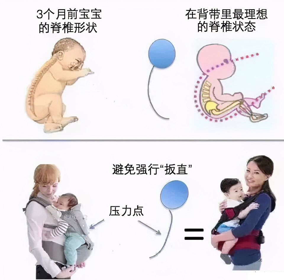 有些家长由于没经验,没太考虑孩子的这些发育特点,为了方便,过早地使用婴儿背带,就会由于外力强行施压,容易导致宝宝脊椎变形。