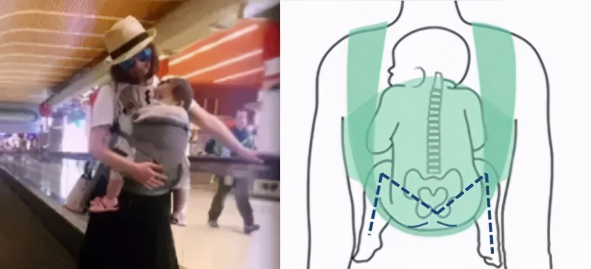 不少家长使用婴儿背带抱娃时,可能会 故意拉直宝贝的双腿 或是 让宝贝双腿向下伸直岔开,就像 大S 这样或是 黑人和范范 抱娃的姿势。