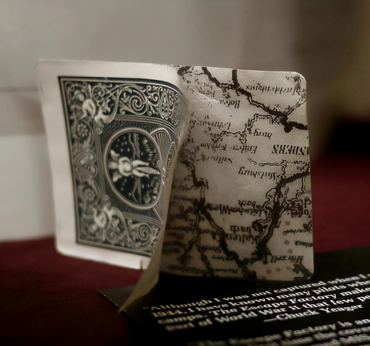 第二次世界大战期间,间谍将逃生的地图藏在了扑克牌中,以此来帮助同国的俘虏逃离战俘营地。