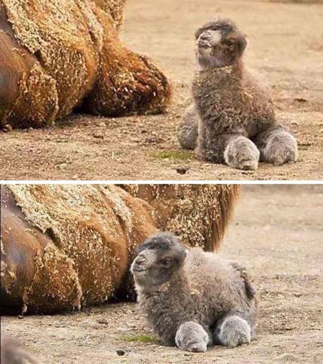 本以为是游客不小心掉到动物园的毛绒玩具,走近了才发现,原来是可爱的骆驼宝宝。