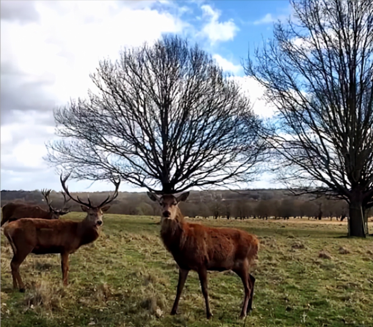 右侧的麋鹿站得非常的巧合,就像将一棵树顶起来了一样,明明都是麋鹿,为什么它与众不同呢?