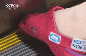 特别是当孩子坐手扶电梯的时候,洞洞鞋非常容易被卷进电梯。