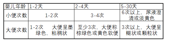除此之外,我们还可以通过宝宝排便的次数来判断。参照下表