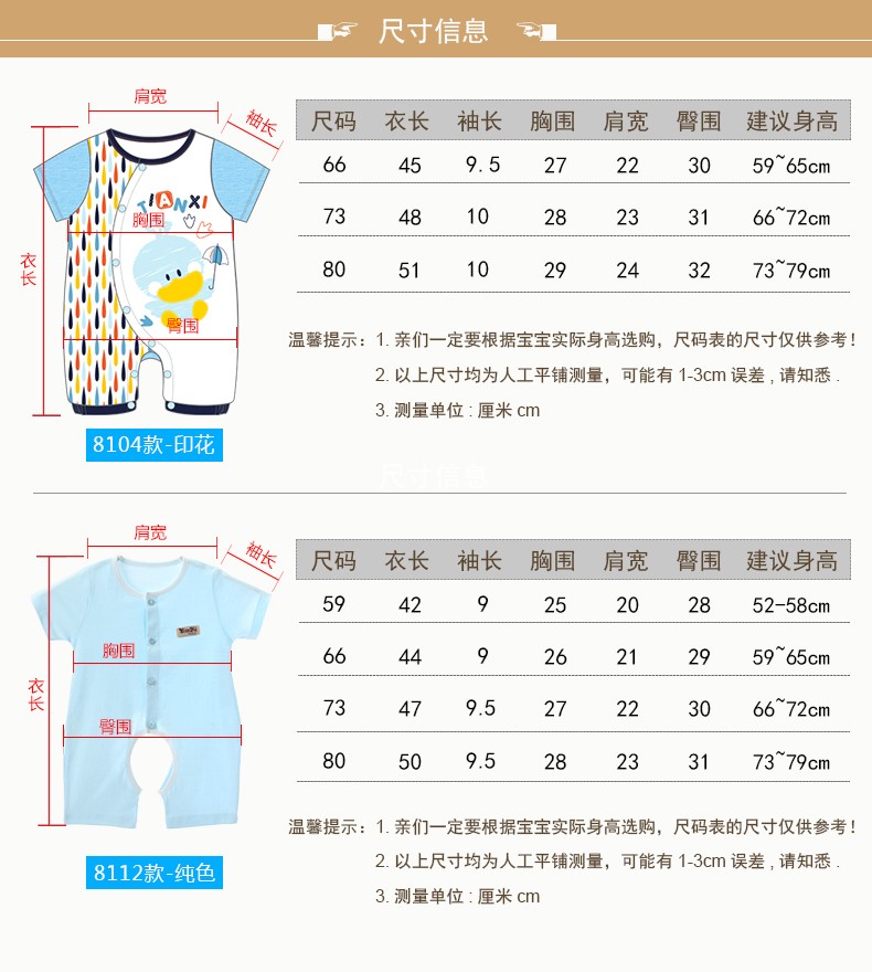 Tips:三个月以下的宝宝建议购买59码的衣服,这样宝宝穿起来也会比较合身,整体形象会更好。