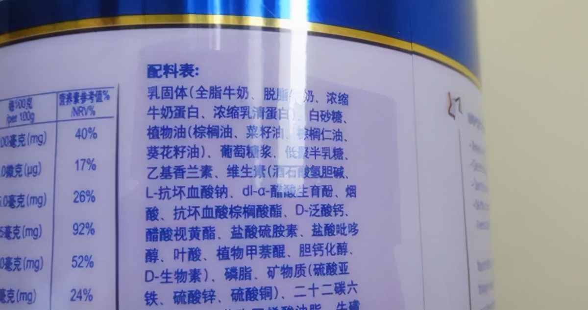 有些奶粉属于调制出来的,在营养上不够,还可能会有不好的添加成份。所以看配料表要看第一位是什么。