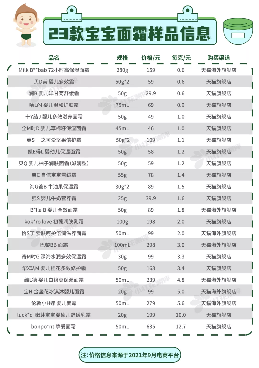接下来,我们就具体看一看23款宝宝面霜的情况: