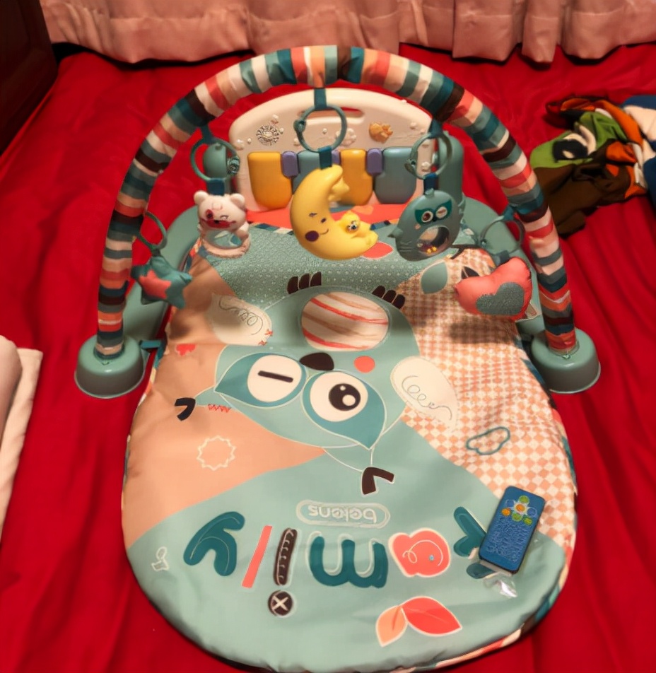 ③如果家长觉得每天挂上取下太麻烦,也可以给宝宝准备个音乐健身架,宝宝状态好的时候,把他放在里面玩,玩完再抱出来。