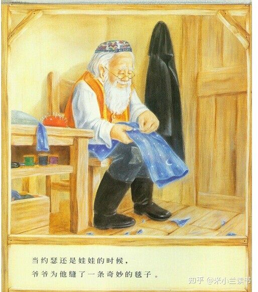 那块蓝色布料,就在爷爷的妙手之下,不断变换着样子,后来又经爷爷之手变成了领带、手帕和纽扣,伴随着约瑟的成长之路。