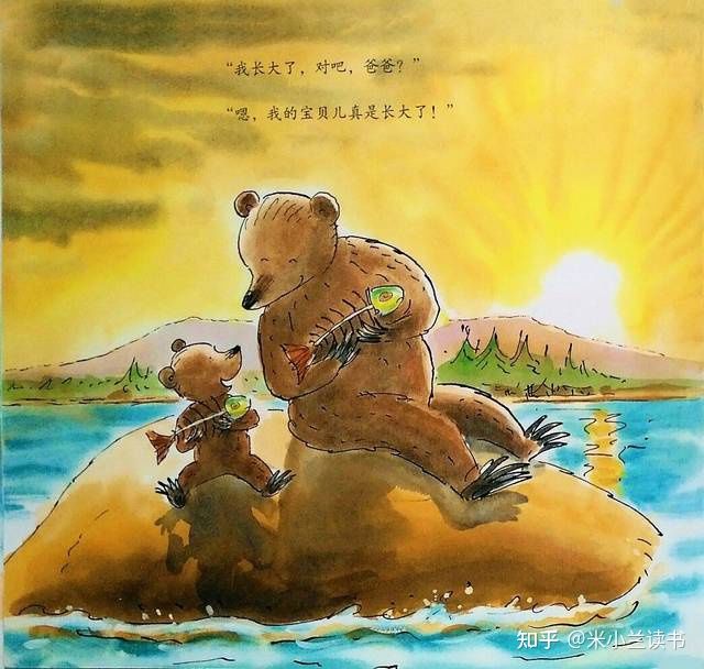 最后小熊也在爸爸的教导下,成功学会了有用,并自己抓到了一条鱼。他开心地跟爸爸分享着美味和成长的喜悦。