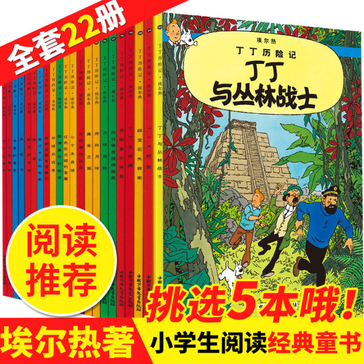 挑选5册 丁丁历险记漫画书全套22册单本16开本