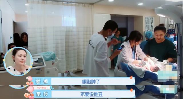 在一档节目中,姜潮 看着刚出生的儿子丹尼尔,说他眼泡肿了,觉得宝宝很丑。旁边的接生医生立马说“不要说他丑,挺好看的。”