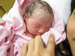 宝宝出生的时候,在身上、头部可能会有一层白白黏黏的东西,这叫“胎脂”,多数在宝宝的额头上、背上,虽然影响美观,但可以起到保护好作用,不必强行擦去。