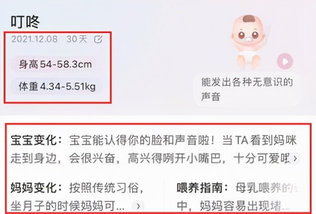 ③通过孕育APP查看各月龄宝宝的标准体重,看自家宝宝是否达标。就像图片一样,姨妈家小孙子刚满月,体重标准是4.34-5.51kg,跟8斤相差不大,还是值得高兴的。