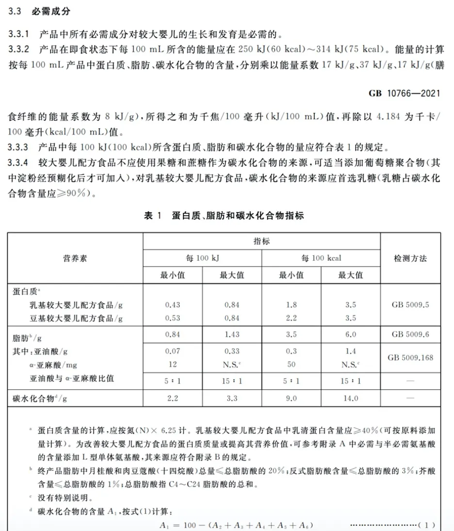 3. 食品安全国家标准《较大婴儿配方食品》(GB10766-2021)