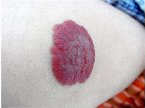 草莓状血管瘤颜色为鲜红色,一般为较小而凸出皮肤表面的结节状肿物,形式草莓,与正常的皮肤边缘分界明显。这是由于皮肤顶层中的血管过度生长导致的,一般不是一出生就有的,而会在宝宝出生后数周才逐渐形成,多发于宝宝面部、头皮、颈部、肩背部、外阴部,也见于任何部位。