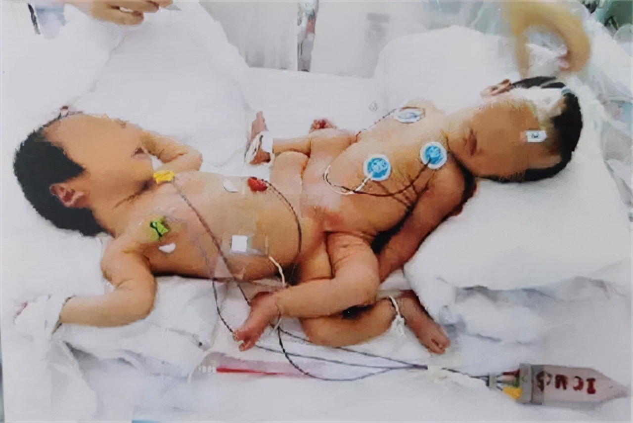 手术过程很顺利,但降生的两个孩子让医生们大吃一惊——这是一对连体女婴,下半身连在一起无法分开。