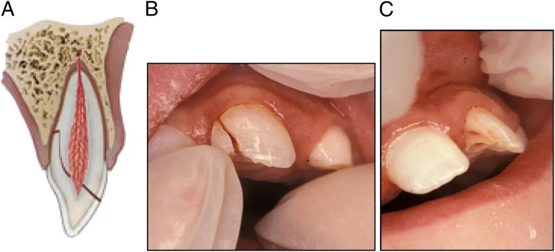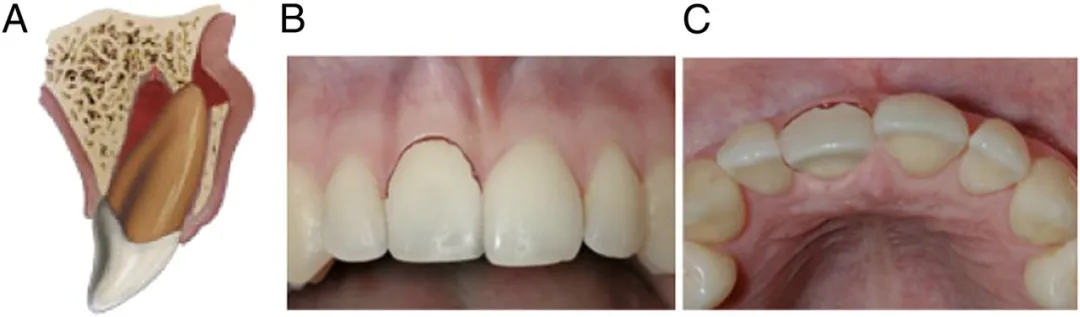 严重的牙齿可能摔“短”一截,甚至摔没了,整颗牙直接“楔”进牙槽骨里。
