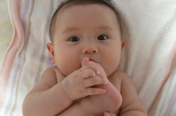 宝宝在这阶段啃手啃脚,家长不必阻止他,保证小手小脚洗干净,被啃咬之后用小手绢擦干就好。另外,小婴儿分辨能力弱,防止他吃到“不该吃的东西”,最有效的办法是将家中危险物品和脏的物品收起来。