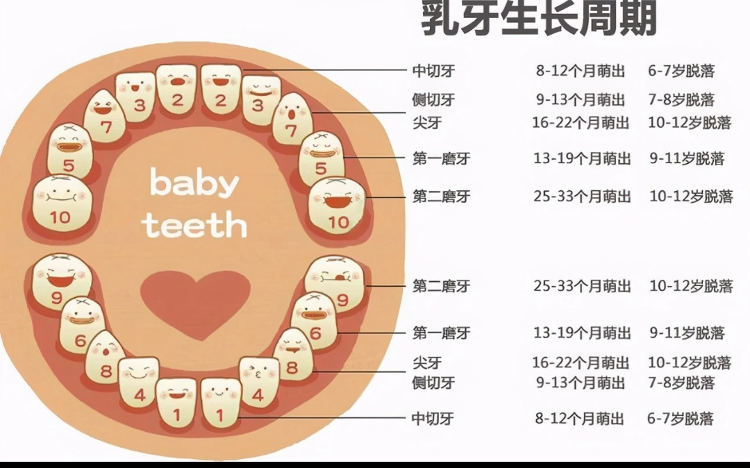 首先我们需要先了解宝宝什么时候会长牙,以及牙齿萌出的顺序是什么?
