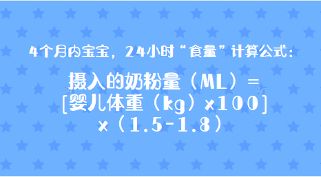 摄入的奶粉量(ML)=[婴儿体重(kg)x100]x(1.5-1.8)