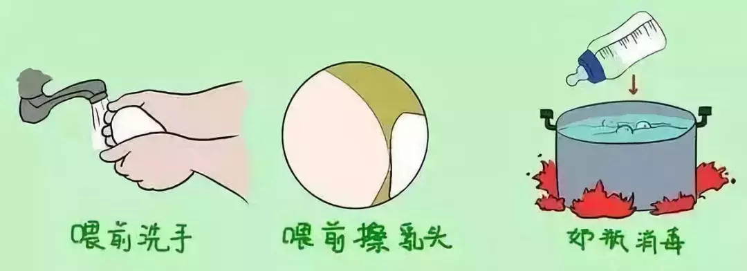 2.奶瓶、奶嘴消毒不彻底,母乳喂养时,妈妈的奶头不清洁。