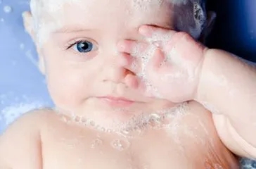 妈妈给孩子洗澡时,建议把宝宝放在手臂上肢后,将大半的身体浸泡到水盆里就行,然后用小毛巾依次从头皮、脸部、颈部、躯干、屁股再到双腿的部位清洗;洗的时候一定要把又褶皱的部位清洗干净。